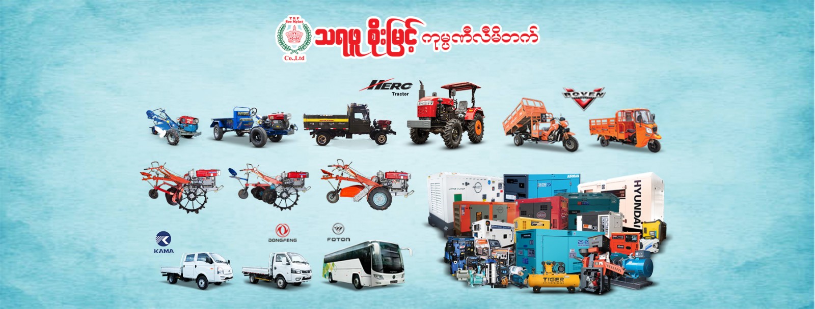 At the present days, it has been distributing and selling machinery, motor vehicles and apparatuses through the 12 branch-offices and the agents' sale shops across Myanmar. The company has been endeavoring for the purposes of developing mechanized farming in agriculture sector, providing access to use more optional vehicles in transportation sector, and making access to buy modern machinery and technology in line with international standards in businesses and social lives. It always holds its customers in high esteem in accordance with its motto, “Tharapyu Soe Myint is accurate, right, and cordial”